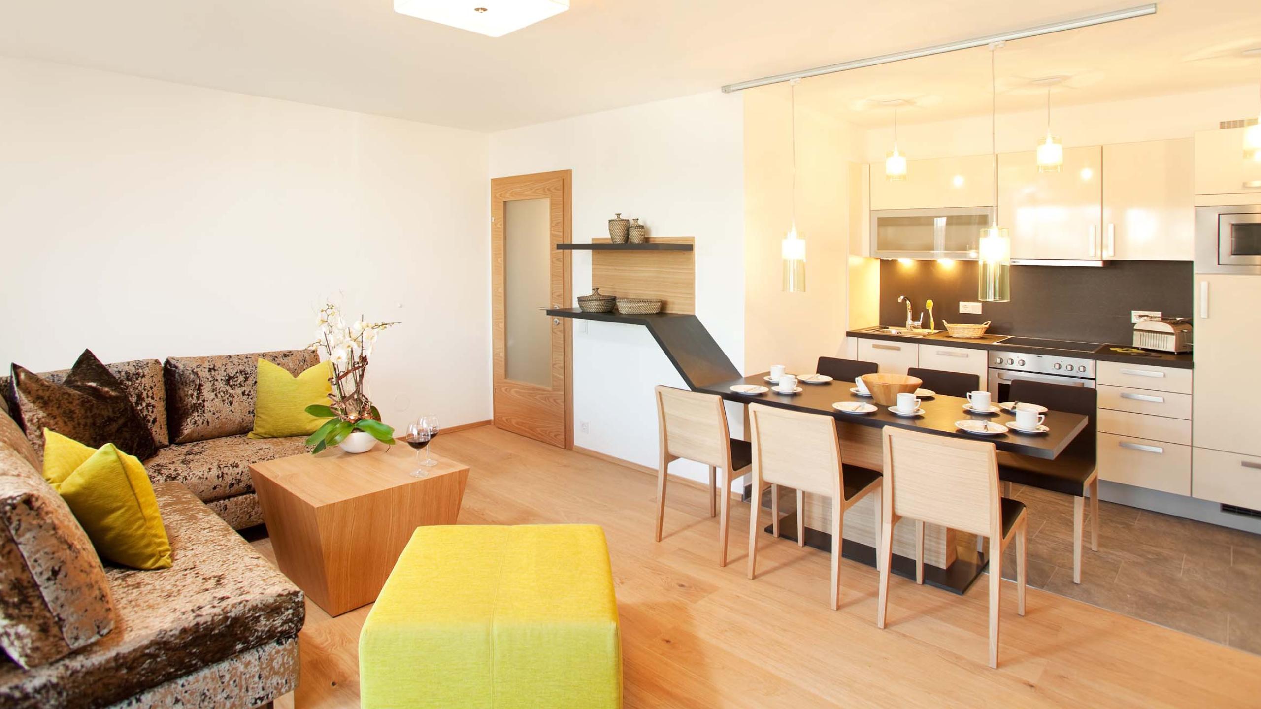 One room is not enough for you, you want an entire apartment for you and your loved ones? Lederer has want you want, and cool lifestyle moments to top it all off. Our apartments offer everything that is at the top of your wish list: a cosy living room with sofa bed to lounge around, a modern kitchen to cook in, two bedrooms to relax in, two bathrooms with shower or bathtub, two separate toilets, a large balcony, Wi-Fi, three 32-inch LED TVs with cable connection, and other bells and whistles so that will make you feel right at home. And best of all? You get to enjoy all our inclusive services.